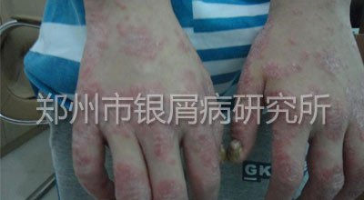 接诊的医生是杨淑莲医生,杨淑莲医生是治疗儿童、青少年银屑病患者的专科医生,杨医生根据小军既往史,为他进行了全面的检查,发现小军的身上的皮损发展的势头很猛烈,全身多处泛发块状皮损,色泽潮红。手部的尤为严重,已经祸及到了指关节,经过进一步检查,手部的病症已经加重为关节病型银屑病。随后杨医生组织了医生会诊,确定了详细的康复方案。